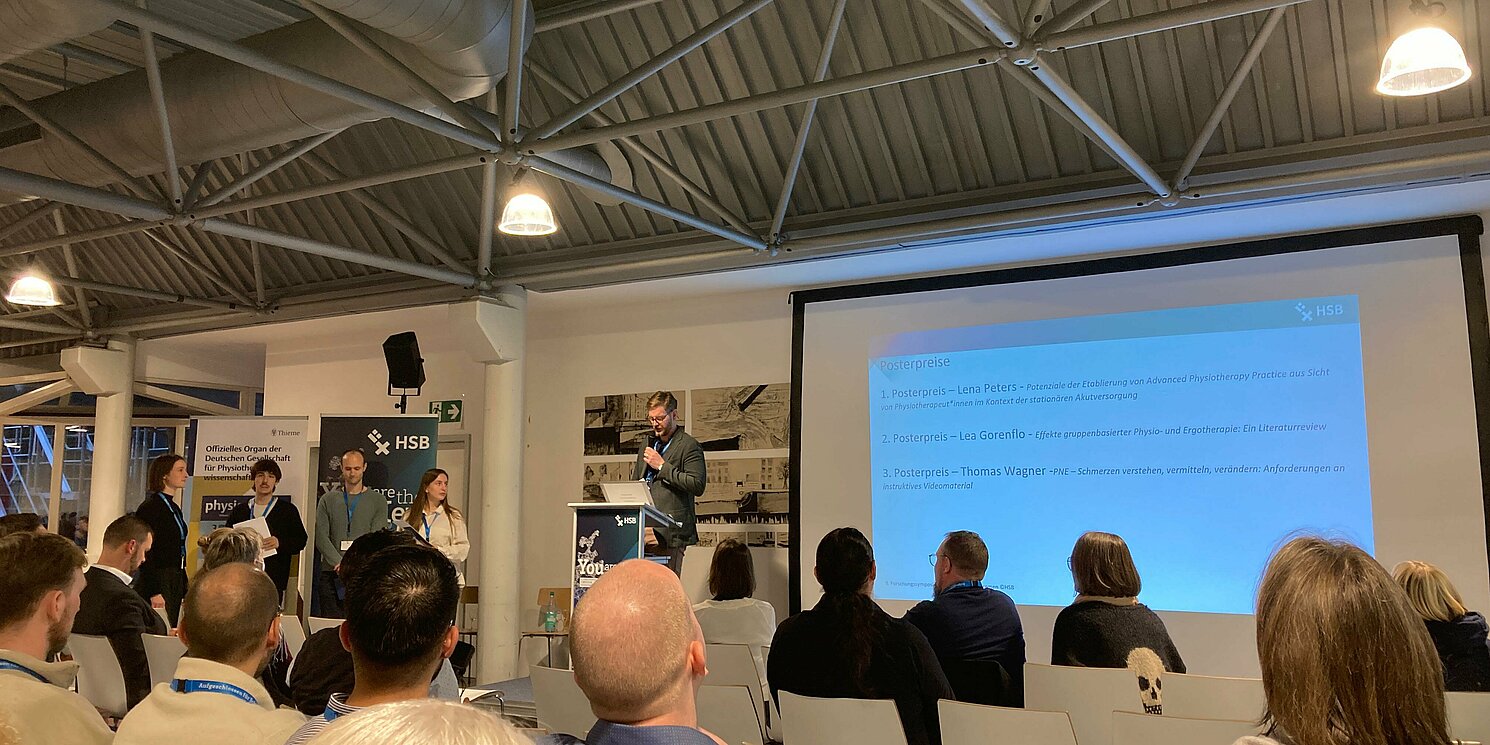 Das Symposium bot ein dichtes Programm aus qualitativ hochwertigen Keynotes, Fachvorträgen, Workshops und Poster-Sessions. Besonders freuen wir uns darüber, dass unsere Studierendengruppen des 8. Semesters B.Sc. Physiotherapie ihre Projektarbeiten als Posterbeiträge vorstellen konnten. Die präsentierten Projekte verdeutlichen, wie sich die physiotherapeutische Disziplin kontinuierlich weiterentwickelt und welche Impulse aus studentischen Forschungsarbeiten entstehen können.